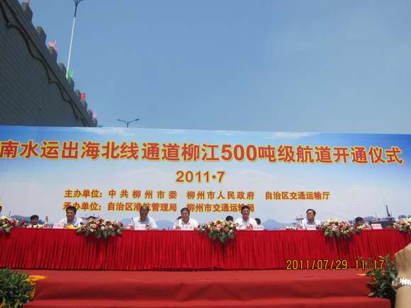 7月29日,由集團直屬單位廣西交通規(guī)劃勘察設(shè)計研究院承擔(dān)前期工作及勘察設(shè)計的柳江航道整治工程在柳州市南車渡碼頭舉行航道工程開通儀式,自治區(qū)交通運輸廳潘魏廳長、周一農(nóng)副廳長及柳州市政府鄭俊康市長、張永剛副市長等領(lǐng)導(dǎo)出席了開通儀式。