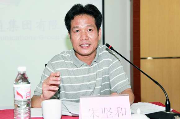 圖為集團(tuán)公司董事長(zhǎng)、黨委書(shū)記朱堅(jiān)和作重要講話