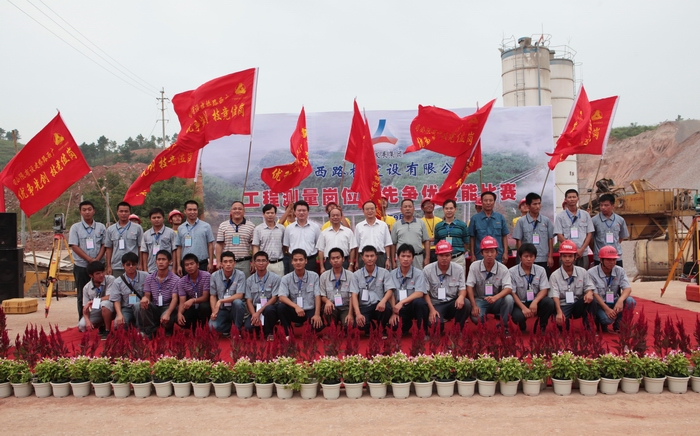 9月2日,廣西路橋建設(shè)有限公司在六欽1標舉辦工程測量崗位創(chuàng)先爭優(yōu)技能比賽。廣西交通工會、海員工會主席黎建華,自治區(qū)交通運輸廳直屬機關(guān)黨委專職副書記羅華芝,集團,公司黨委副書記張友坐等領(lǐng)導(dǎo)出席比賽開幕儀式并講話。