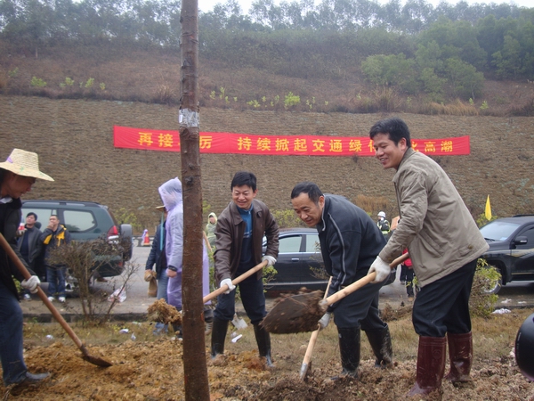 2012年2月2日,由集團公司朱堅和董事長帶隊,直屬各單位領(lǐng)導(dǎo)及相關(guān)人員共計18人,到南寧至友誼關(guān)高速公路蘇圩互通立交參加自治區(qū)交通系統(tǒng)“2012年廣西交通綠化美化植樹活動”。