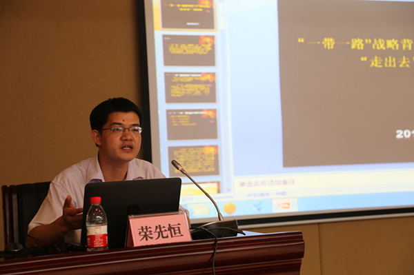 榮博士從戰(zhàn)略內(nèi)涵、歷史緣由、時代背景、框架思路等方面詳細(xì)解讀和分析了“一帶一路”戰(zhàn)略構(gòu)想,并結(jié)合廣西發(fā)展優(yōu)勢及集團公司發(fā)展需要進行了針對性、科學(xué)性、前瞻性地輔導(dǎo)。榮博士指出,當(dāng)前“一帶一路”戰(zhàn)略的實施,為中國企業(yè)“走出去”創(chuàng)造出了難得的歷史機遇,是中國未來10年的重大政策紅利,必將加速中國企業(yè)“走出去”步伐。新發(fā)展集團作為廣西的國有大型企業(yè),要善于把握新的經(jīng)濟發(fā)展形勢,主動融入“一帶一路”國家戰(zhàn)略,抓住“一帶一路”建設(shè)新重點,利用廣西的先行合作平臺優(yōu)勢,積極與其他企業(yè)合作“走出去”,以海陸互通重點通道工程為突破,建立靈活機制,多元化投資,在“一帶一路”大聯(lián)通網(wǎng)絡(luò)建設(shè)中有所作為。