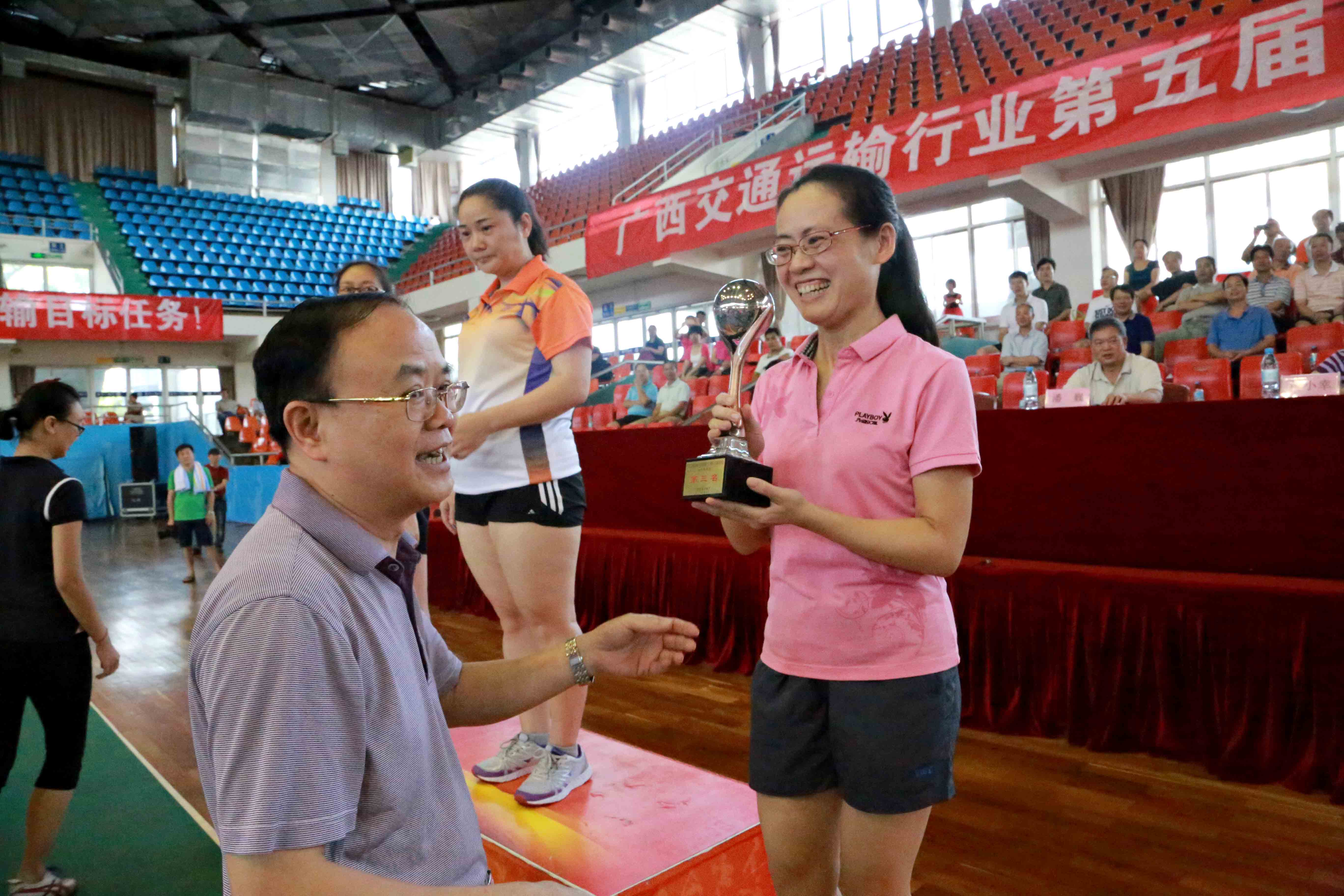 6月26-28日,廣西交通運(yùn)輸行業(yè)第五屆“交通杯”球類運(yùn)動會在廣西體育館舉辦,共有27個單位、企業(yè)參加了本屆運(yùn)動會。我集團(tuán)公司朱堅和董事長、黨委書記為團(tuán)長,劉明洪、張友坐、鄧遠(yuǎn)志、覃炳賢等領(lǐng)導(dǎo)班子成員為副團(tuán)長,率團(tuán)參加運(yùn)動會。集團(tuán)公司代表團(tuán)(70余名運(yùn)動員)在連續(xù)3天的運(yùn)動會日程里,參與了男子籃球、氣排球(男子組、女子組)、乒乓球(男子團(tuán)體、女子團(tuán)體)、羽毛球(男子團(tuán)體、女子團(tuán)體)等比賽項目競技,并獲得優(yōu)異成績。