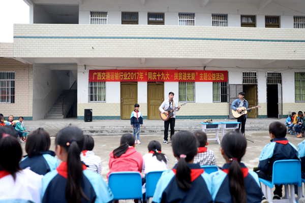 11月10日,集團(tuán)公司團(tuán)委組織青年團(tuán)干赴羅城縣東門鎮(zhèn)德音村小學(xué)參加共青團(tuán)廣西壯族自治區(qū)交通運(yùn)輸廳委員會(huì)組織的廣西交通運(yùn)輸行業(yè)2017年“同慶十九大•扶貧送關(guān)愛”主題公益活動(dòng)。