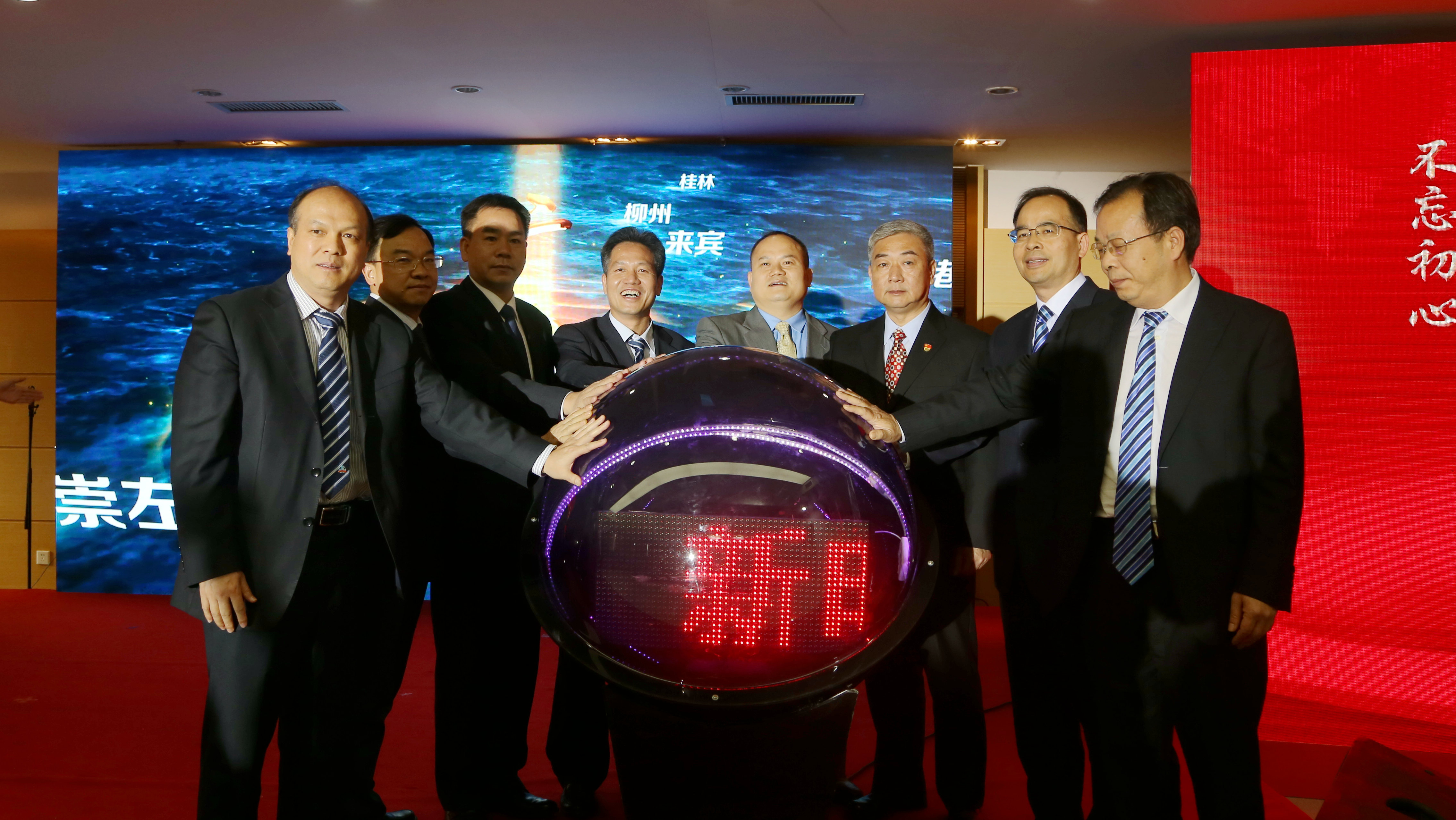 活動尾聲,集團公司班子領導登臺點亮水晶球,開啟集團公司立足廣西,輻射全國,走向世界,不斷創(chuàng)造新輝煌的全新時代。