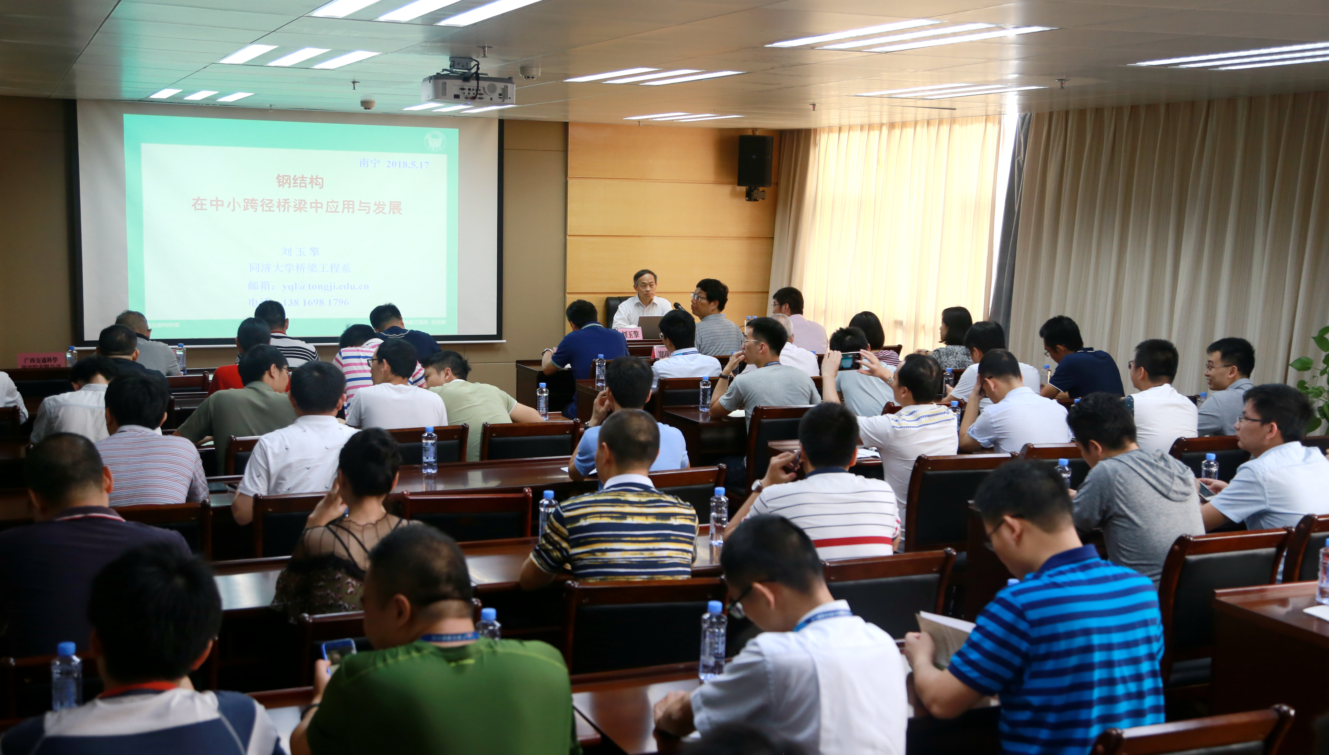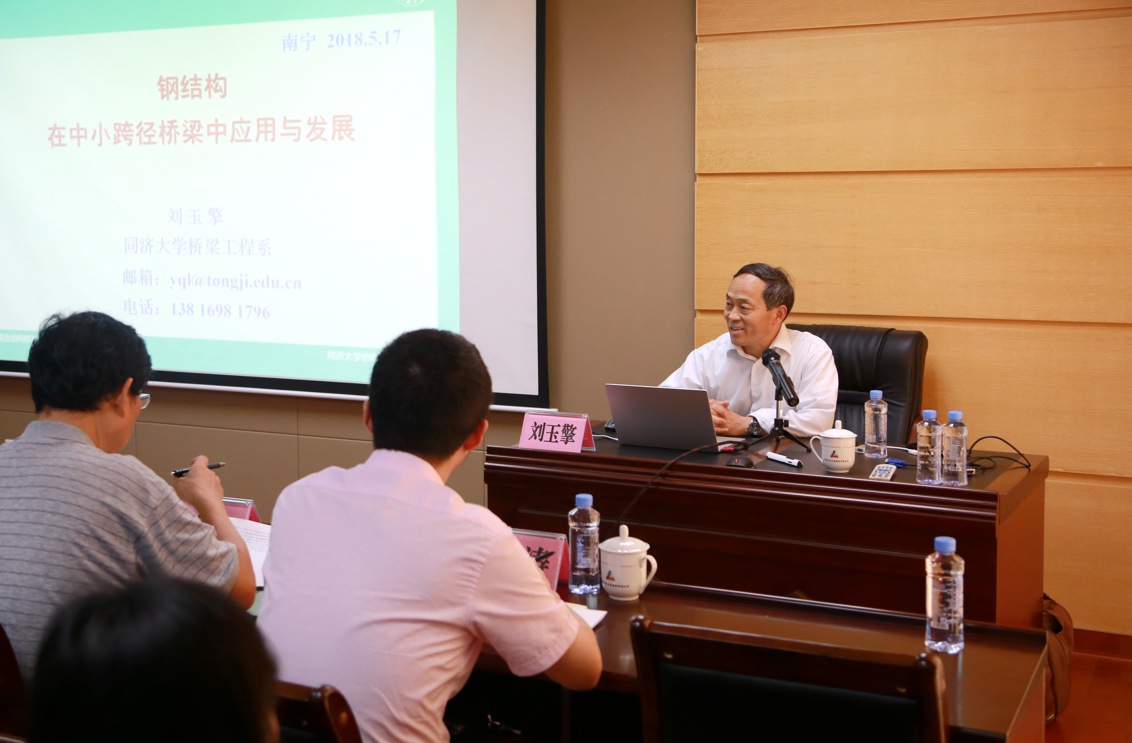 5月17日上午,集團(tuán)公司博士后科研工作站邀請合作流動站同濟(jì)大學(xué)橋梁工程系教授、博士生導(dǎo)師劉玉擎到集團(tuán)公司授課,講解鋼結(jié)構(gòu)在中小跨徑橋梁中的應(yīng)用及發(fā)展歷程。集團(tuán)公司總工程師覃炳賢、首席專家鄭明德及直屬企業(yè)技術(shù)骨干共72人參加了講座。