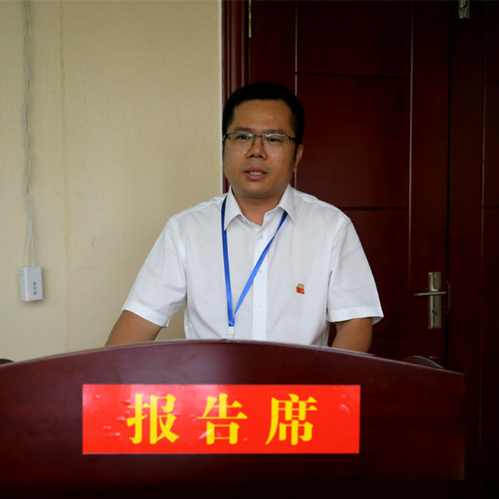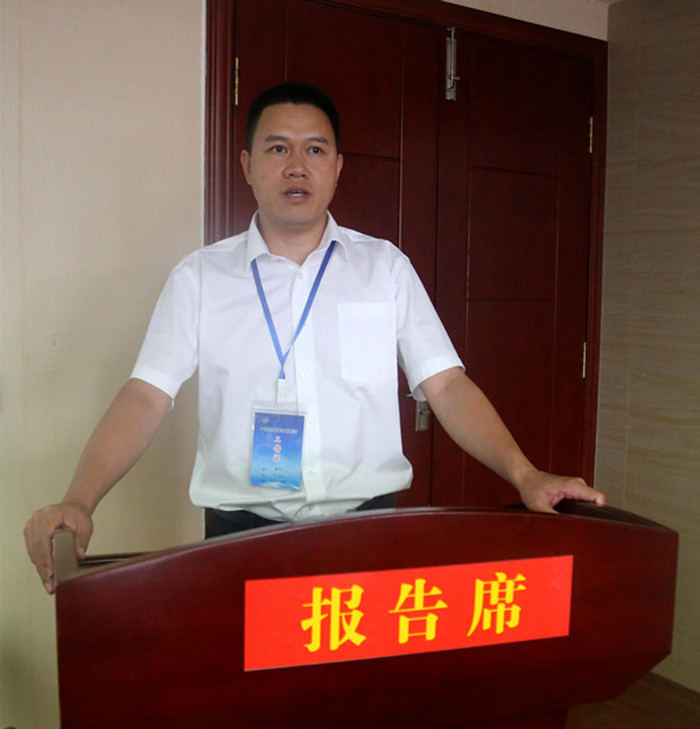 圖二:新恒通公司黨委副書記、副董事長、總經(jīng)理、總工程師藍日彥在本部站為活動致辭