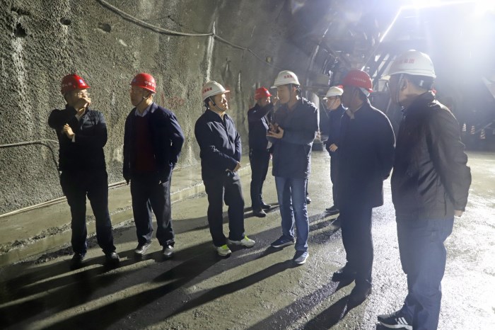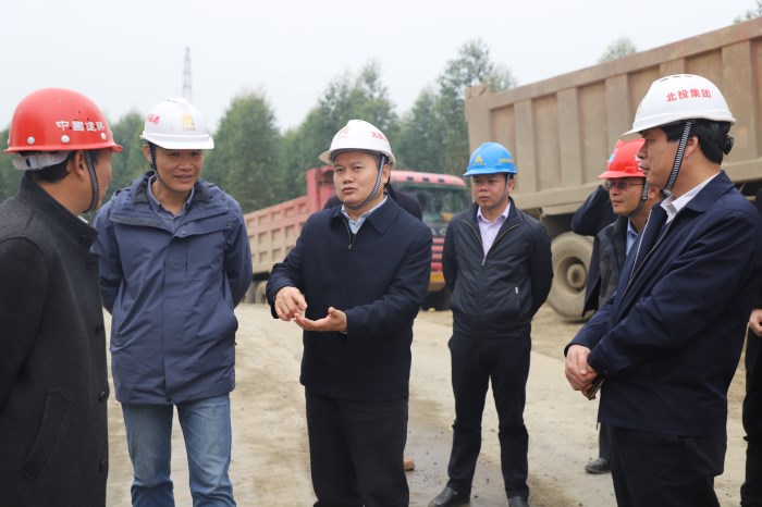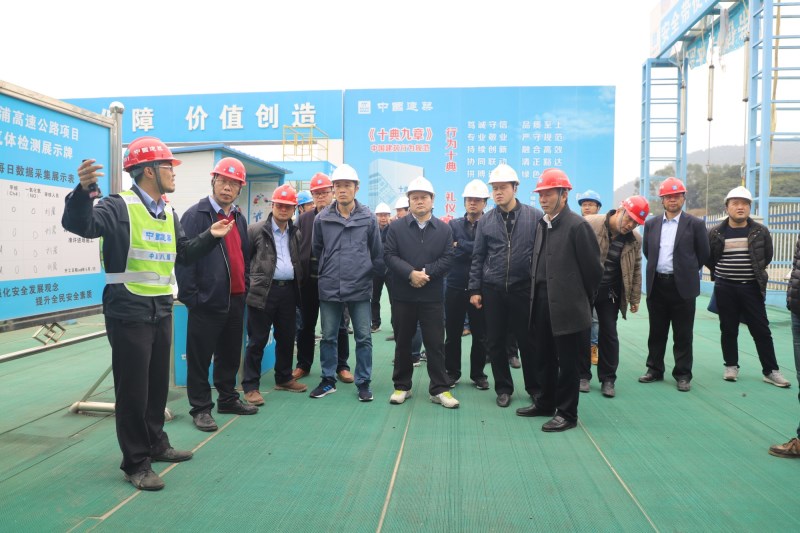 圖1:唐咸秋(左三)在大浦路重點控制性工程平陸運河特大橋施工現(xiàn)場指導(dǎo)工作
